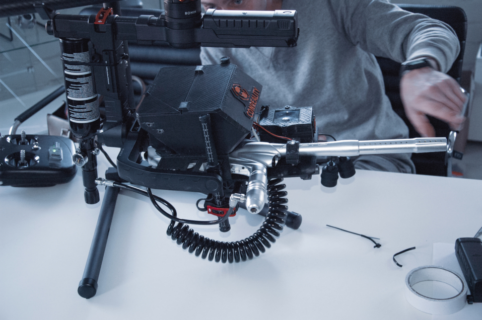 Build around the proven DJI Matrice 600, this concept drone gunship is manned by a crew of two. The payload is outfitted with our own design of gimballed paintball turret and carrying capacity of several hundred paintballs.