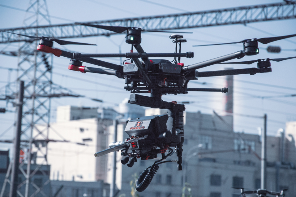 Build around the proven DJI Matrice 600, this concept drone gunship is manned by a crew of two. The payload is outfitted with our own design of gimballed paintball turret and carrying capacity of several hundred paintballs.